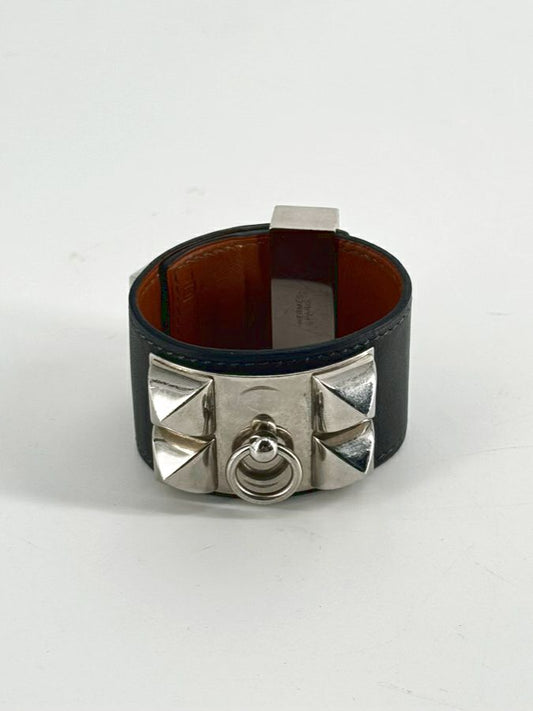 HERMES Gunmetal Leather Collier de Chien Wrap Bracelet