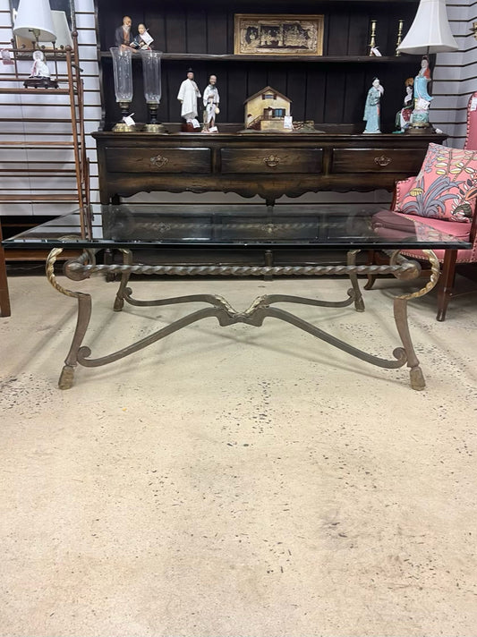 Glass & Wrought Iron Hollywood Regency Coffee Table