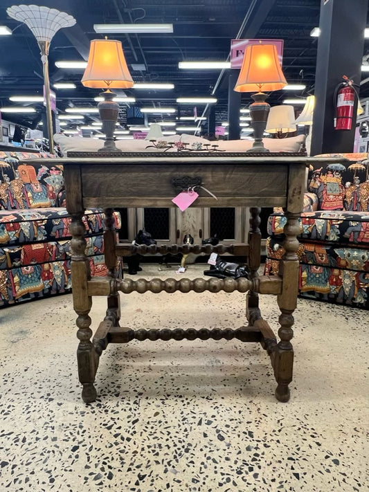 ANTIQUE Brown Wood Jacobean Occasional Table w/ Drawer