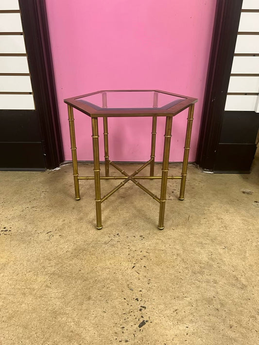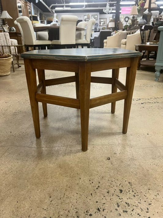 VINTAGE Aqua Wood Painted Octagon Occasional Table
