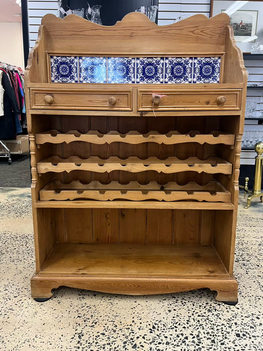 ANTIQUE Mellow Pine Cupboard w/ Wine Rack & Tile Back Splash