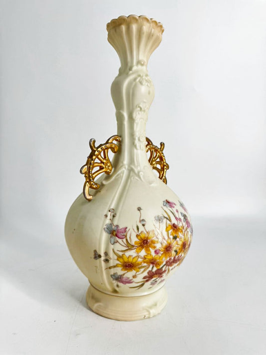 GERMANY-RUDOLSTADT Cream & Pink/Yellow Flowers Porcelain Vase