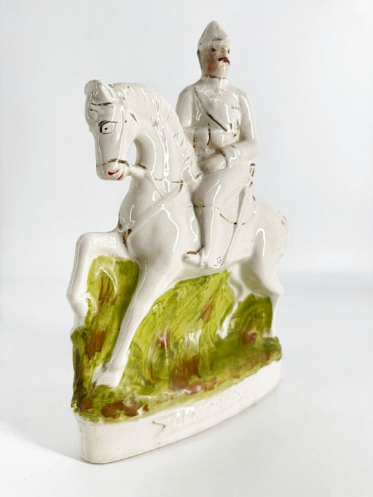 White & Green Ceramic Handpainted Staffordshire General French Figurine
