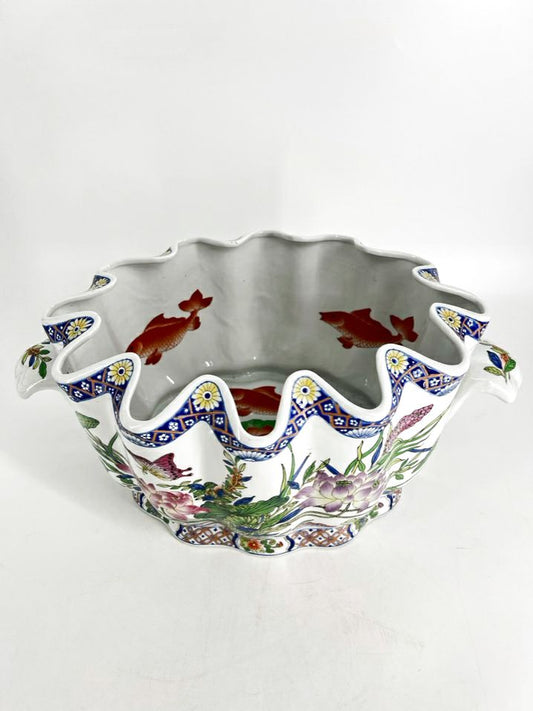 White, Purple & Green Porcelain Floral & fish Foot Bath