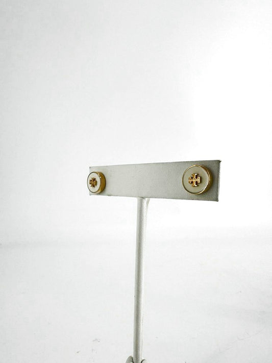 TORY BURCH Gold Tone & Cream Enamel Circle Stud Earrings