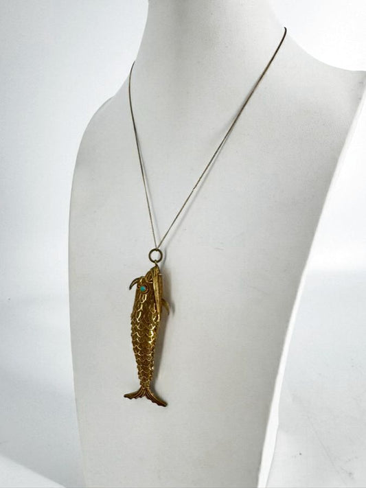 STERLING SILVER Gold Tone Koi Fish Locket Necklace