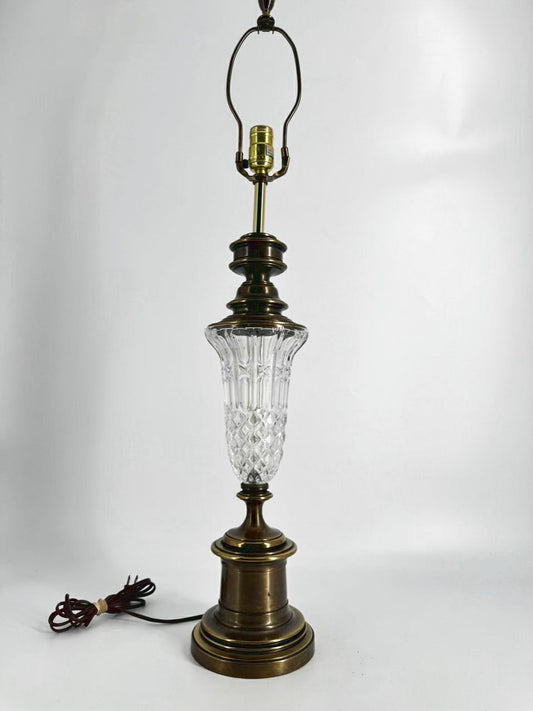VINTAGE THE BRADBURY GALLERY Amber Glass Lamp w/ Leather Look Shade