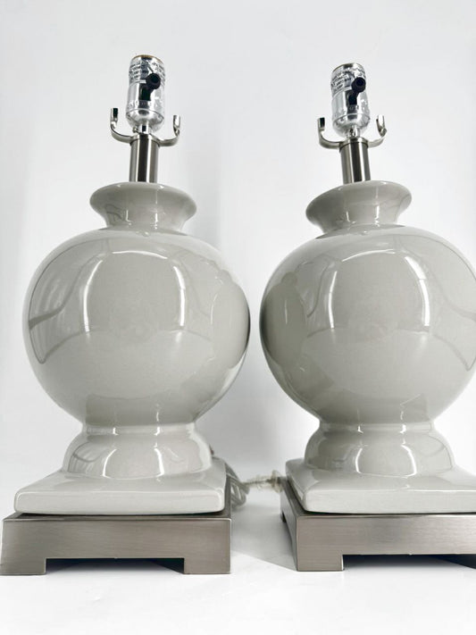 Gray Ginger Jar Pair of Lamps w/ Brushed Silver Bases