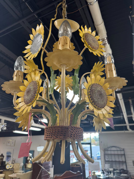 Yellow & Green Tole Sunflower 5-Arm Chandelier