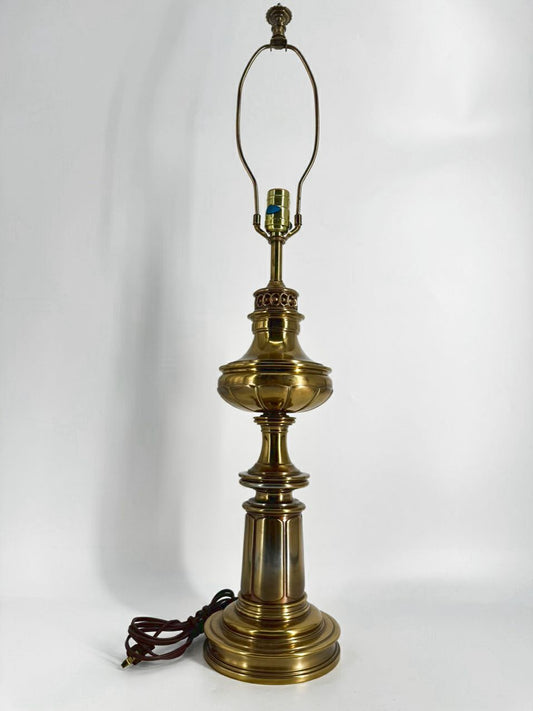 WILDWOOD Brass, Glass & Wood Column Pair of Lamps
