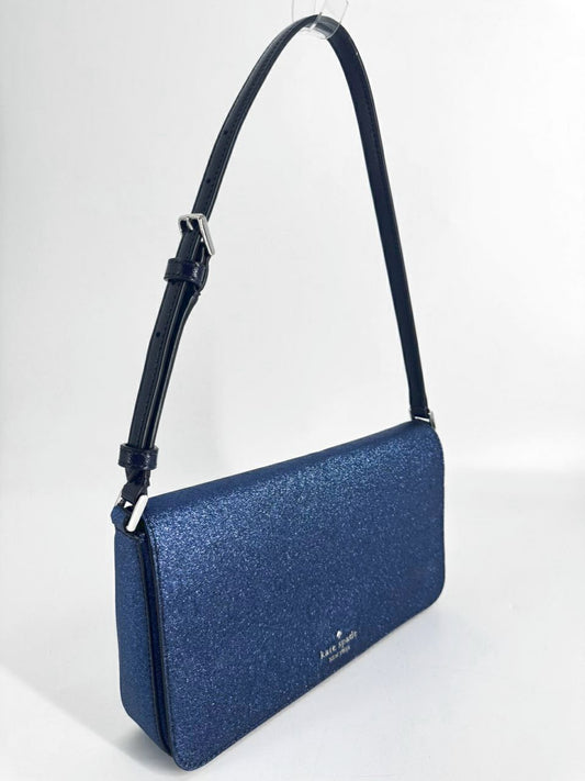 KATE SPADE Blue Sparkle Leather Flap Shoulder Purse