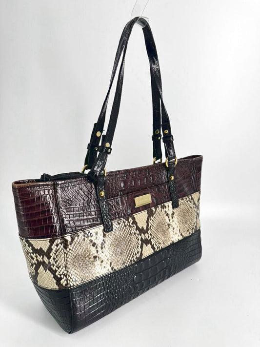 BRAHMIN Cream & Brown Leather Snake Print Purse