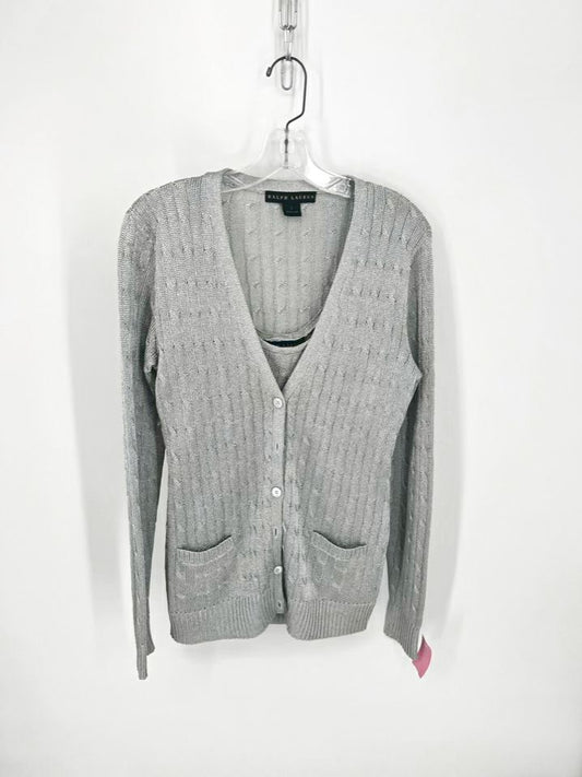 RALPH LAUREN BLACK LABEL Size L Silver Knit 2pc Top