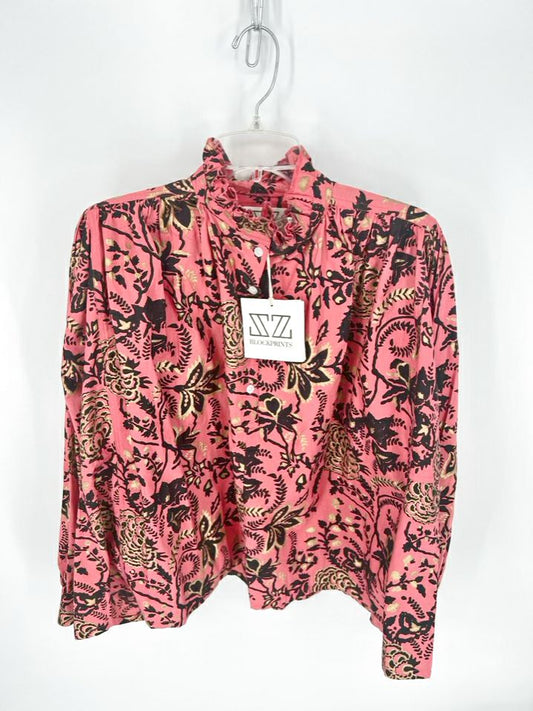 SZ BLOCKPRINTS Size M Berry Print Floral Blouse NWT