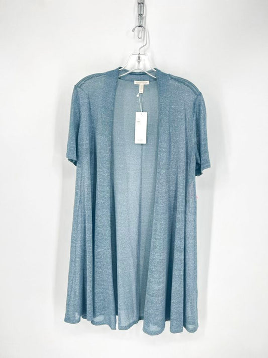 EILEEN FISHER Size M Slate Blue Linen Blend Short Sleeve Cardigan NWT