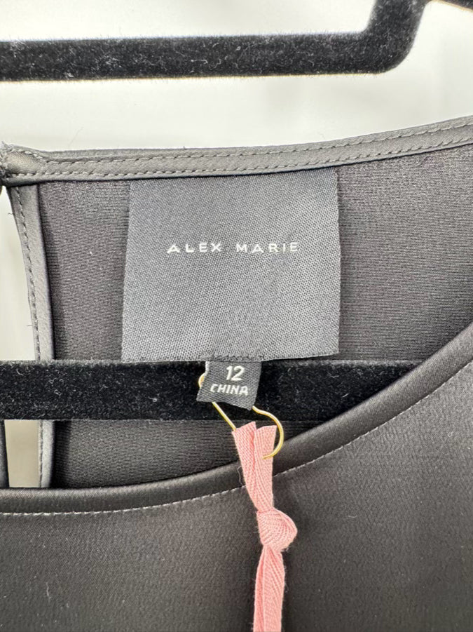 ALEX MARIE Size 12 Black Flora Satin Dress NWT