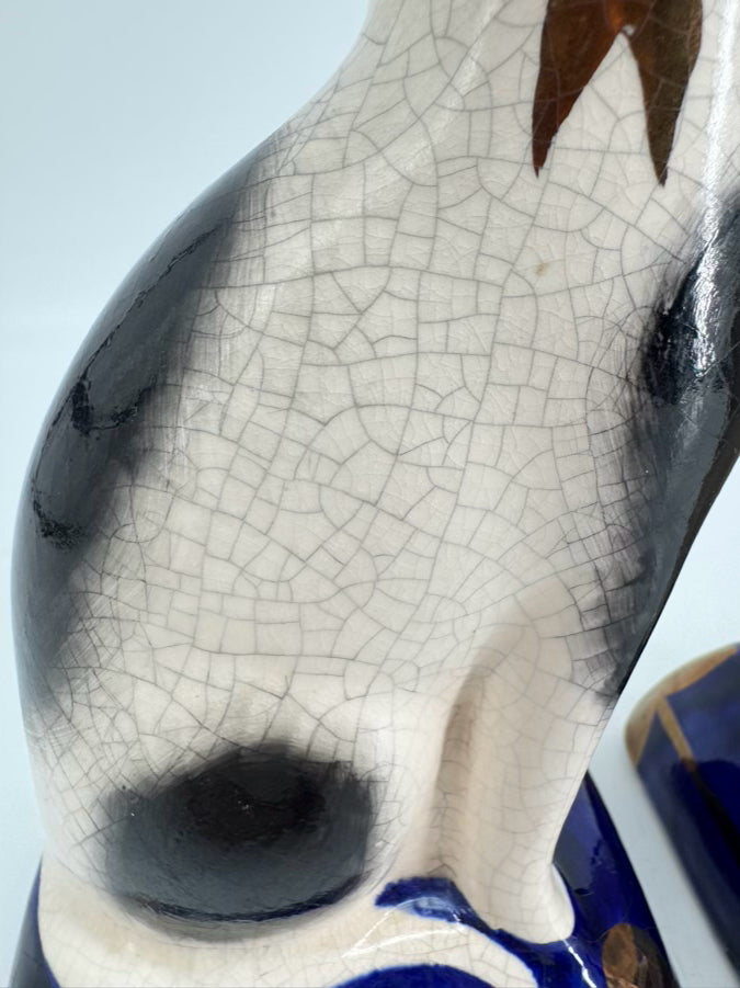 Black, White & Blue Ceramic Staffordshire Pair of Cat Figurines