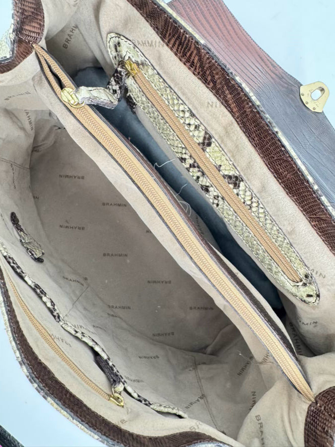 BRAHMIN Cream & Brown Leather Snake Print Purse