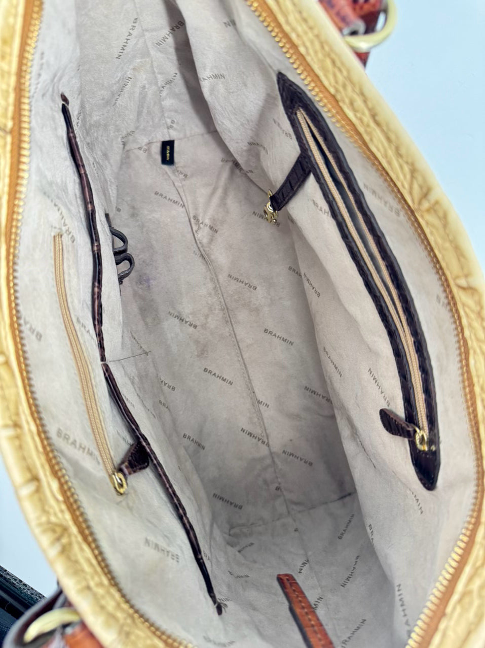 BRAHMIN Cream & Brown Embossed Leather Purse