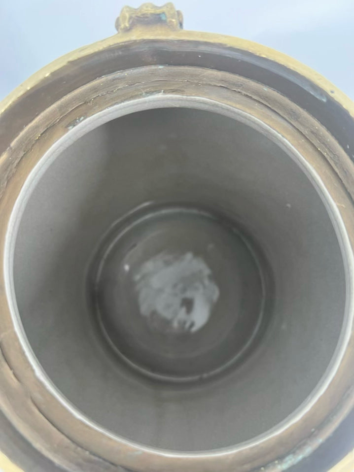 Brown Tozai Ceramic Jar W/ Brass Lid