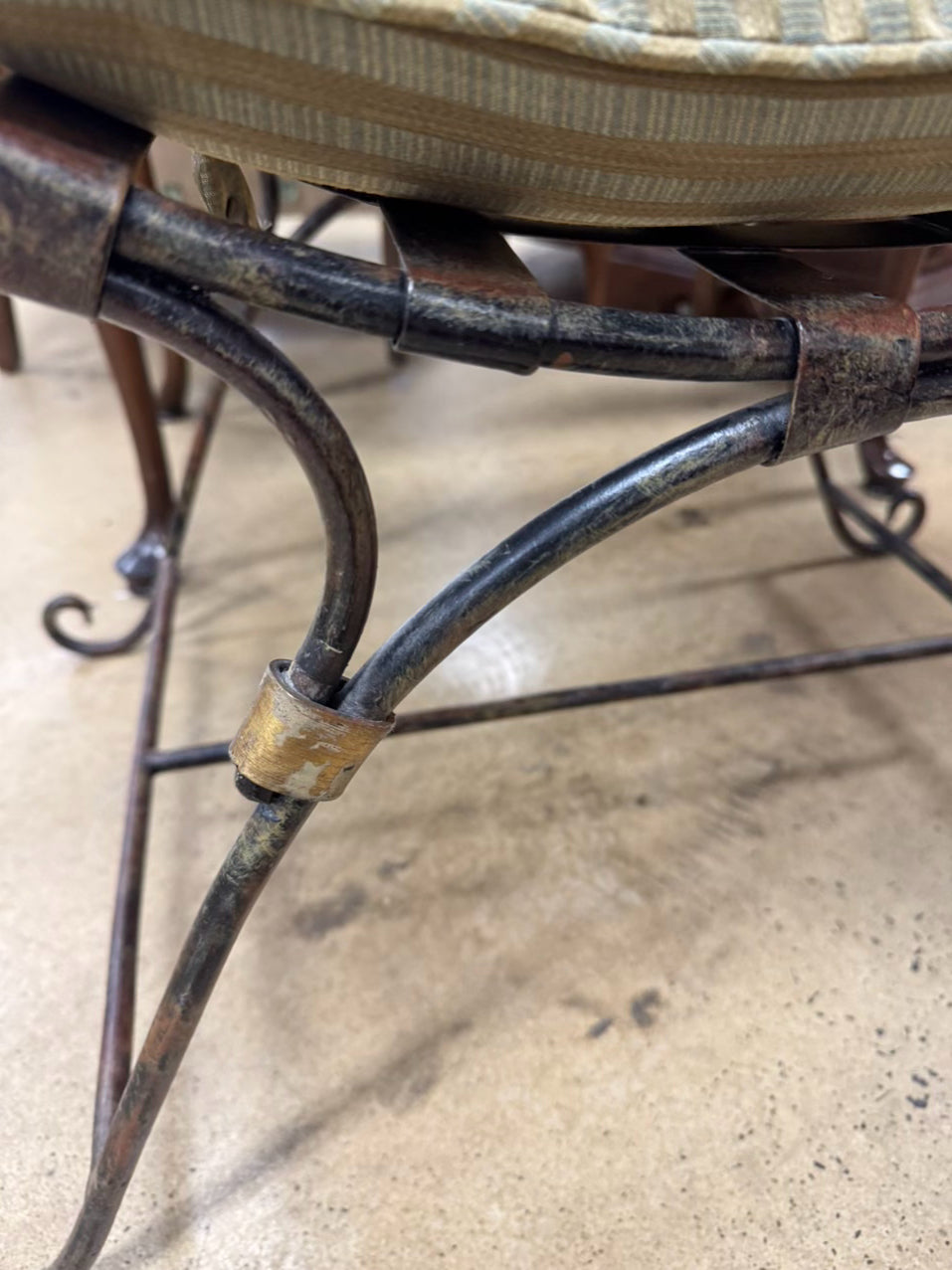 Metal Brushed Gold & Green Stripe Cushion Stool