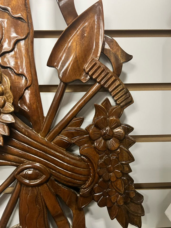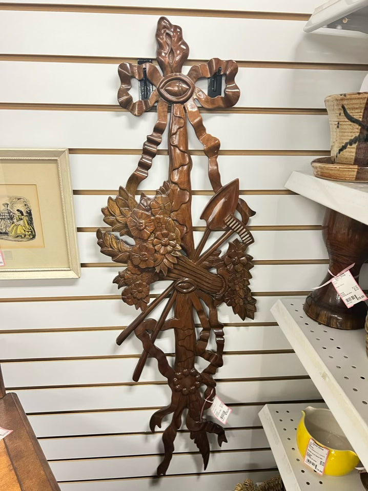 Wood Carved Bow & Floral Wall Hanging