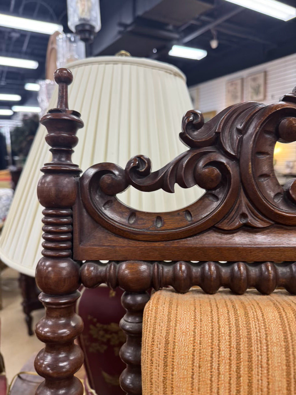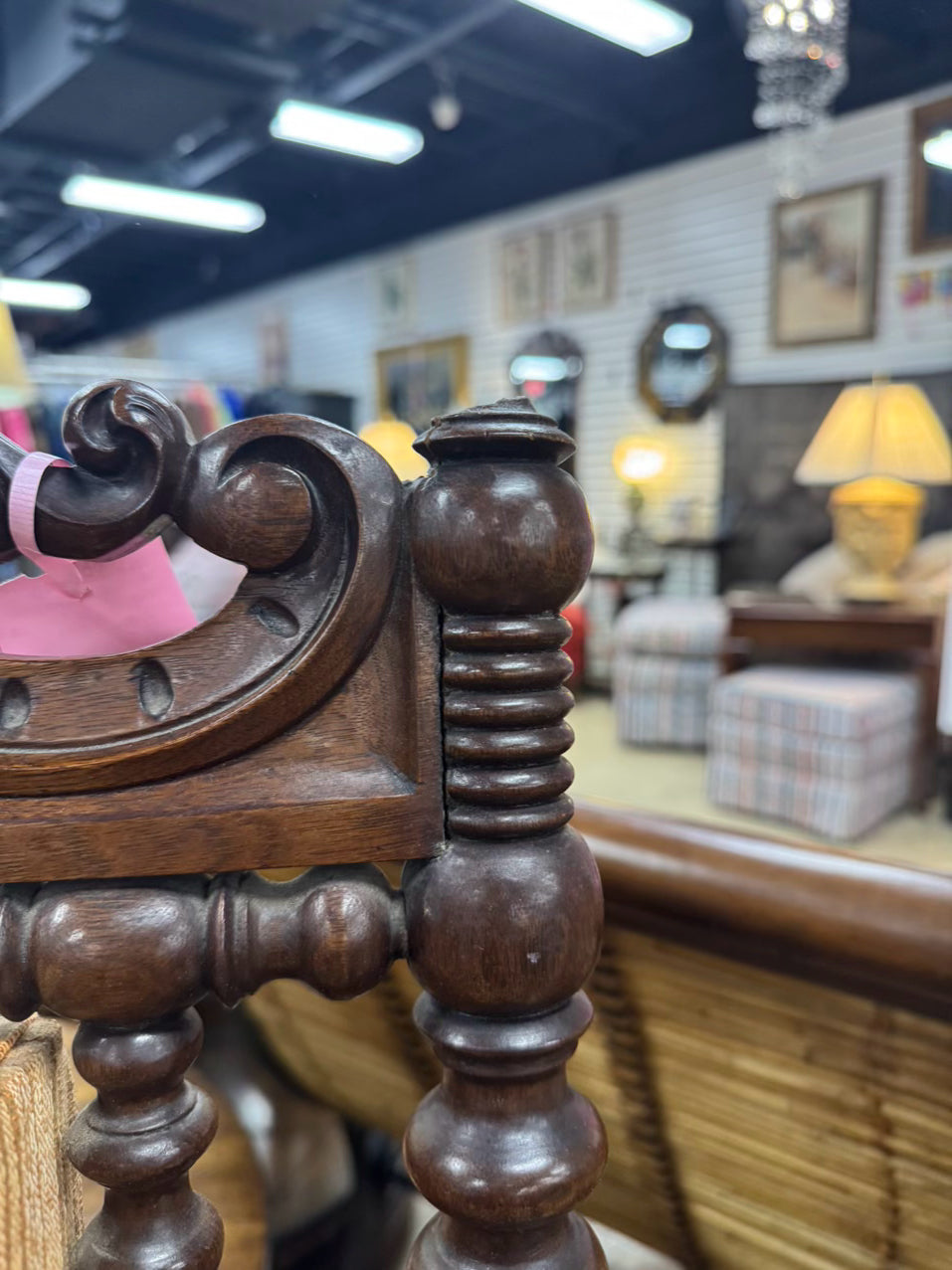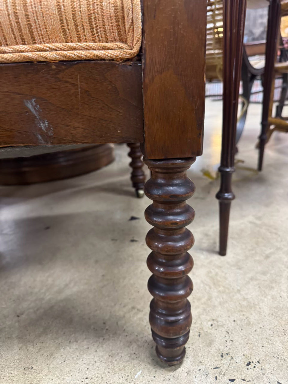 Wood & Salmon Upholstered English Bobbin Chair