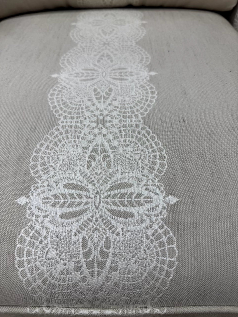 ETHAN ALLEN Cream & Taupe Wood Upholstered French Chair