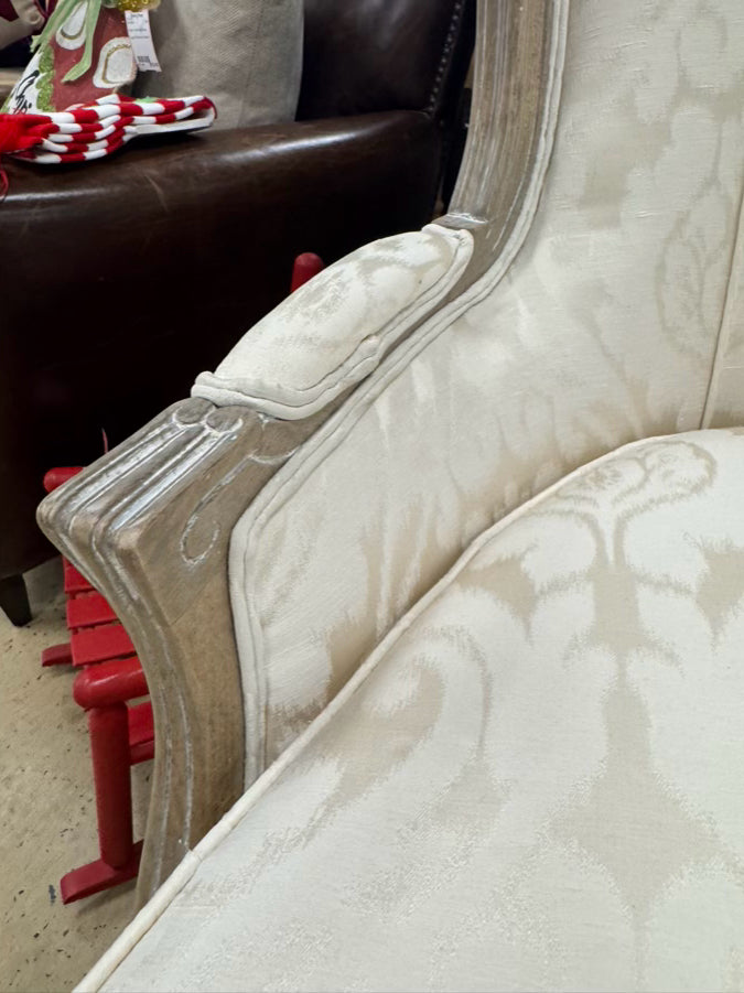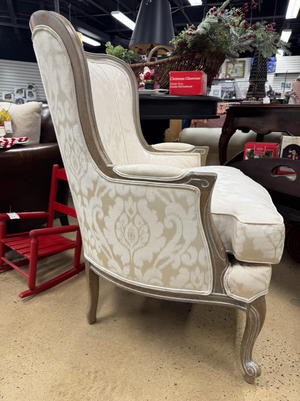 ETHAN ALLEN White Wash Wood & Cream Upholstered French Chair