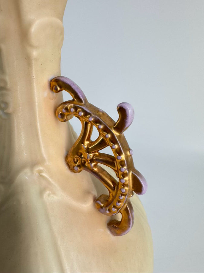 GERMANY-RUDOLSTADT Cream & Purple Flowers Porcelain Vase