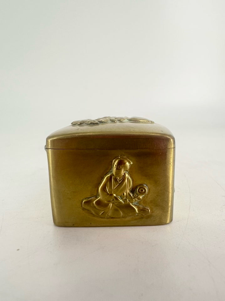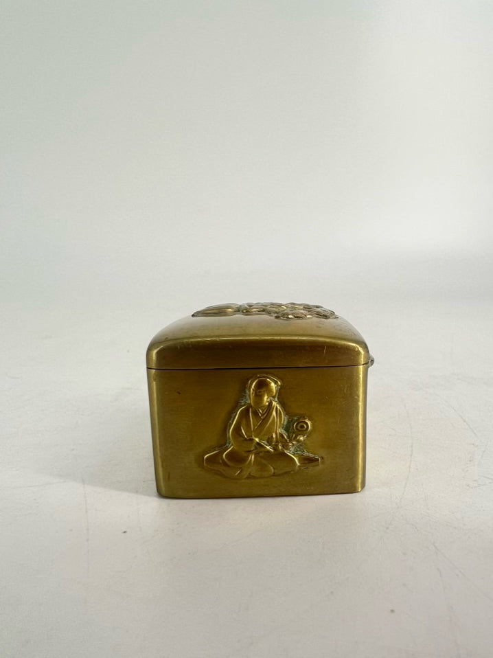 JAPAN Gold Tone Brass 19th Century Floral Trinket Box