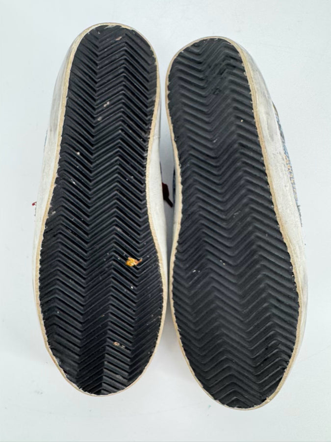GOLDEN GOOSE Size 38 Blue, Gray & Red Leather Animal Print Sneakers