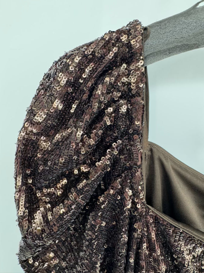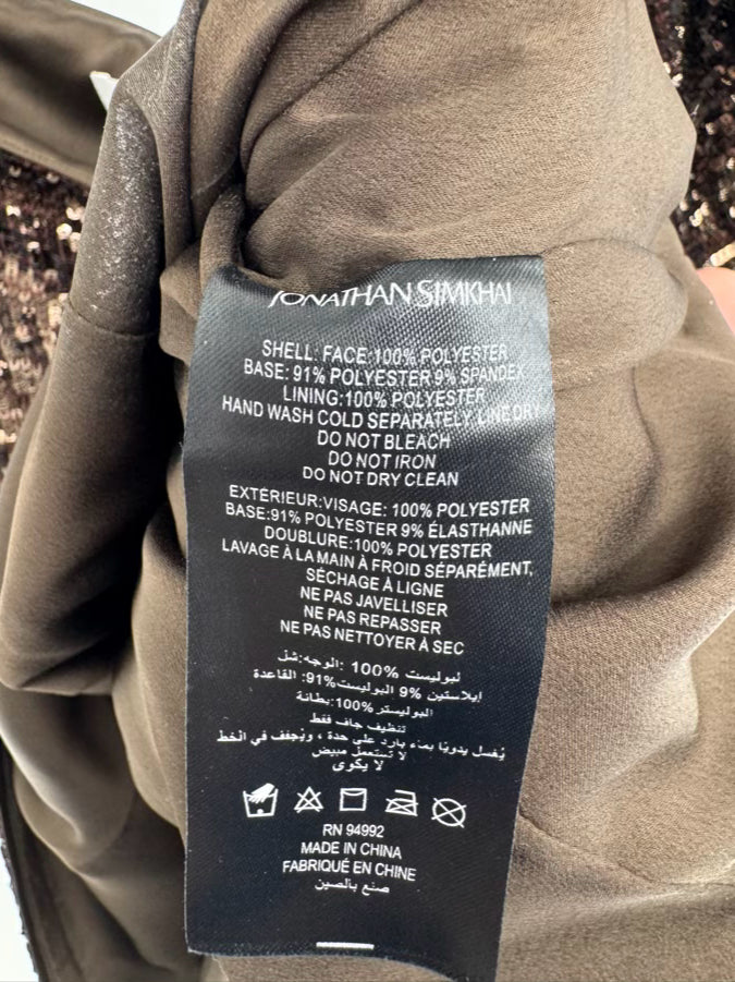 JONATHAN SIMKHAI Size 8 Brown Sequin Long Sleeve Top NWT