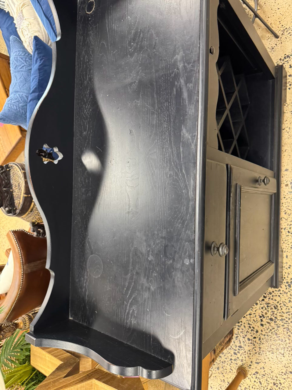 LAURA ASHLEY HOME Black Wood Cabinet w/ Wine Rack