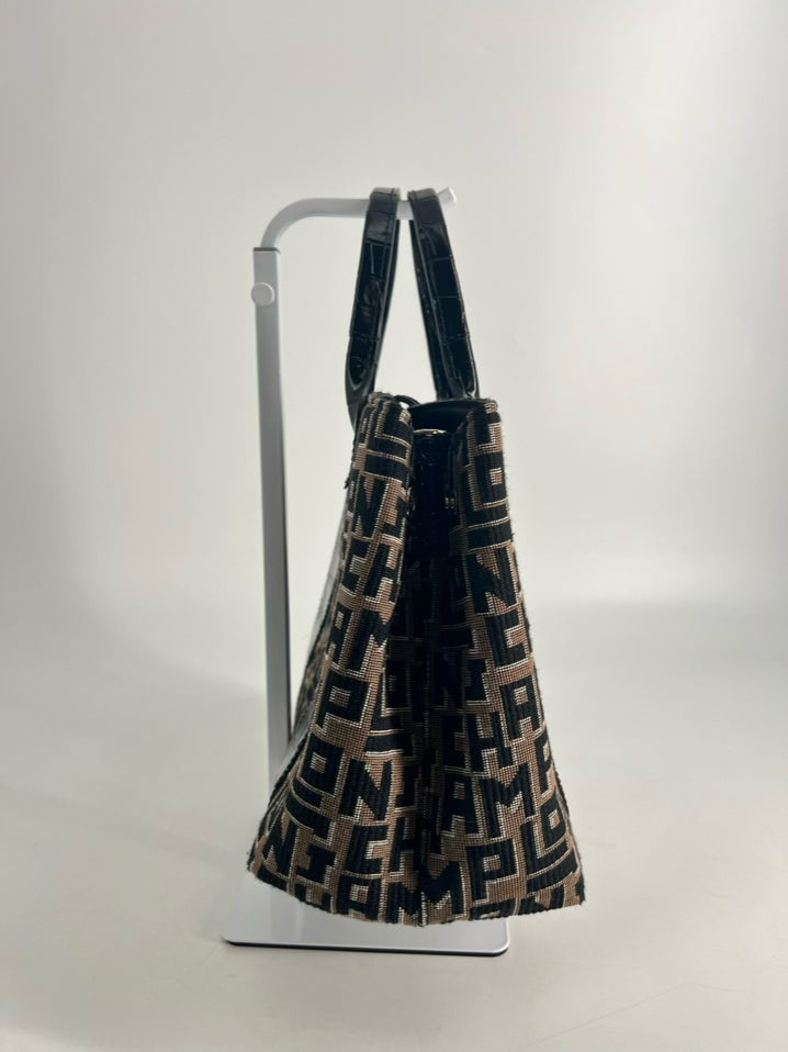 LONGCHAMP Tan & Black Jacquard Monogram Purse