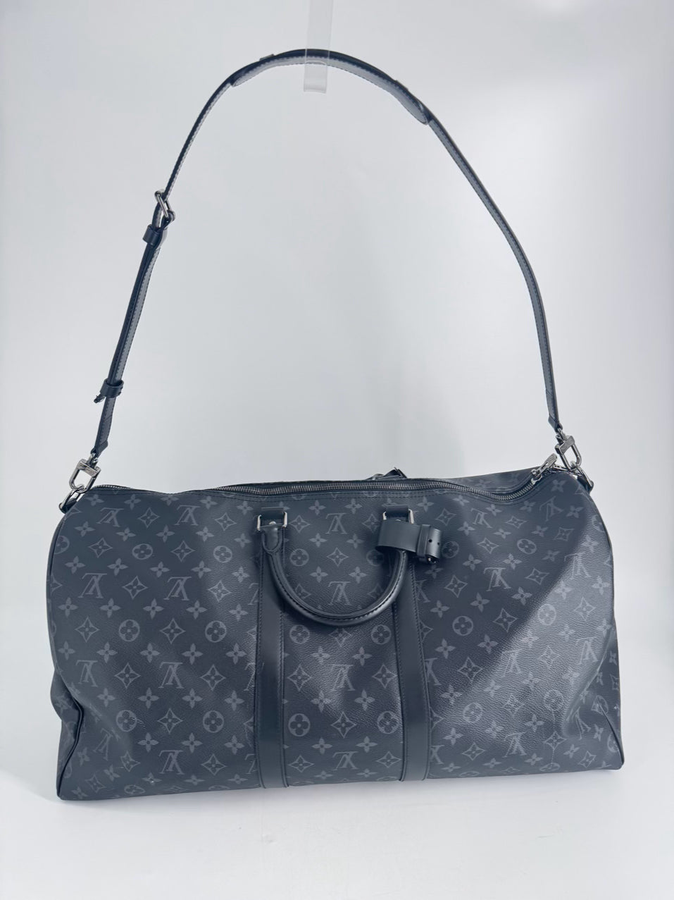 LOUIS VUITTON Black & Gray Monogram Keepall Bandouliere 55 Duffle Bag