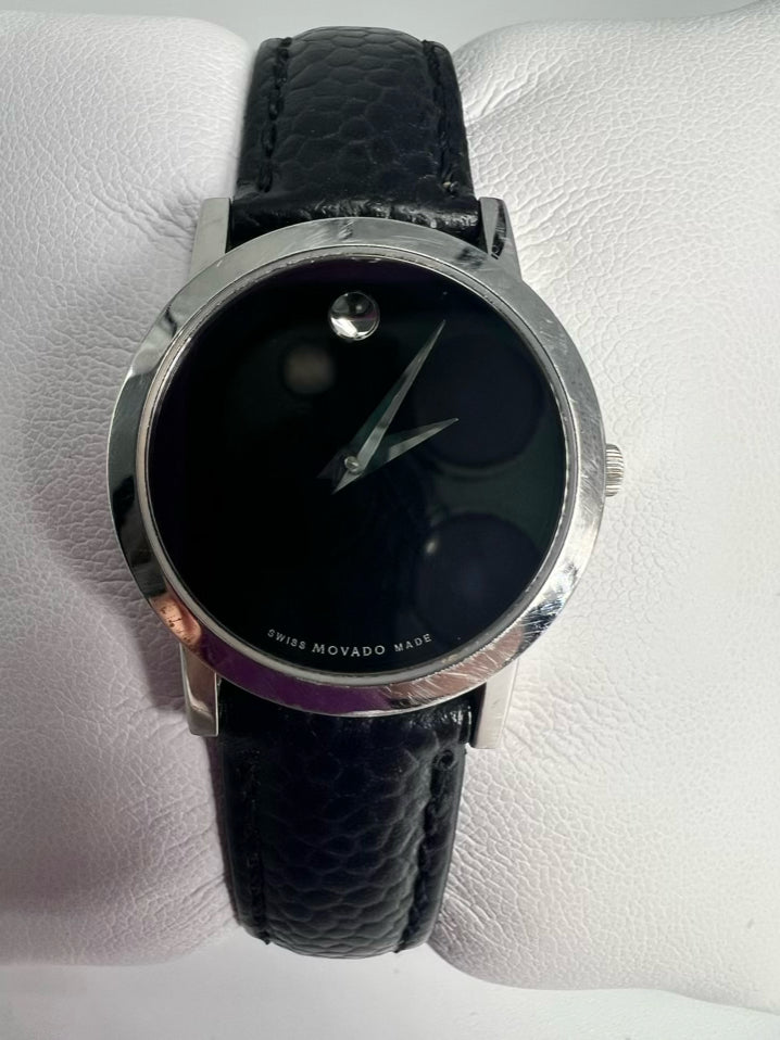 MOVADO Black Leather Stainless Steel Sapphire Crystal Watch