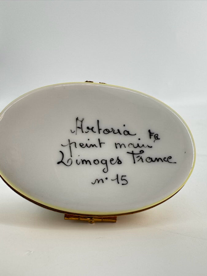LIMOGES Orange & Blue Cat & Fishbowl Ceramic Trinket Box