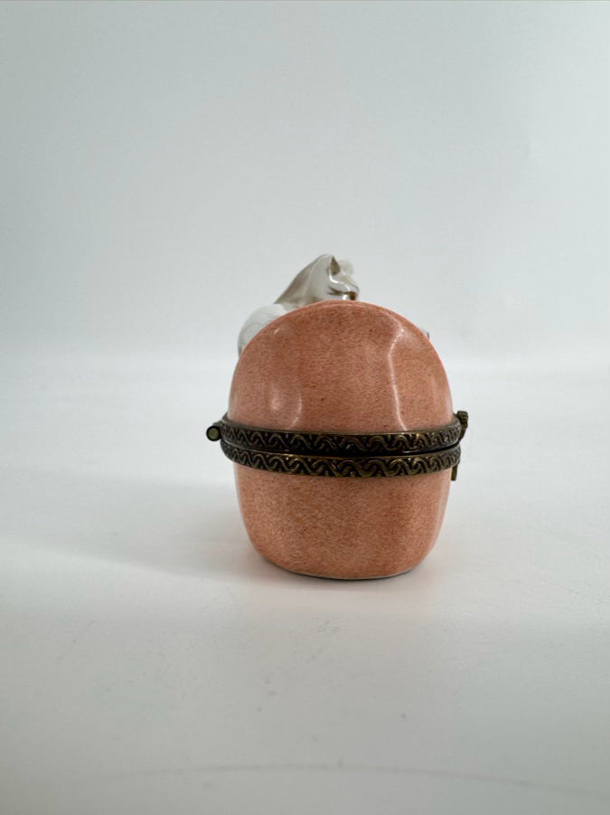 LIMOGES Peach & White Cats Wrapped in Blanket Ceramic Trinket Box