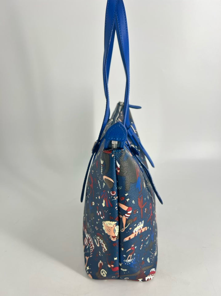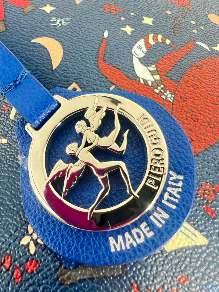 PIERO GUIDI Blue & Red Leather Circus Print Purse
