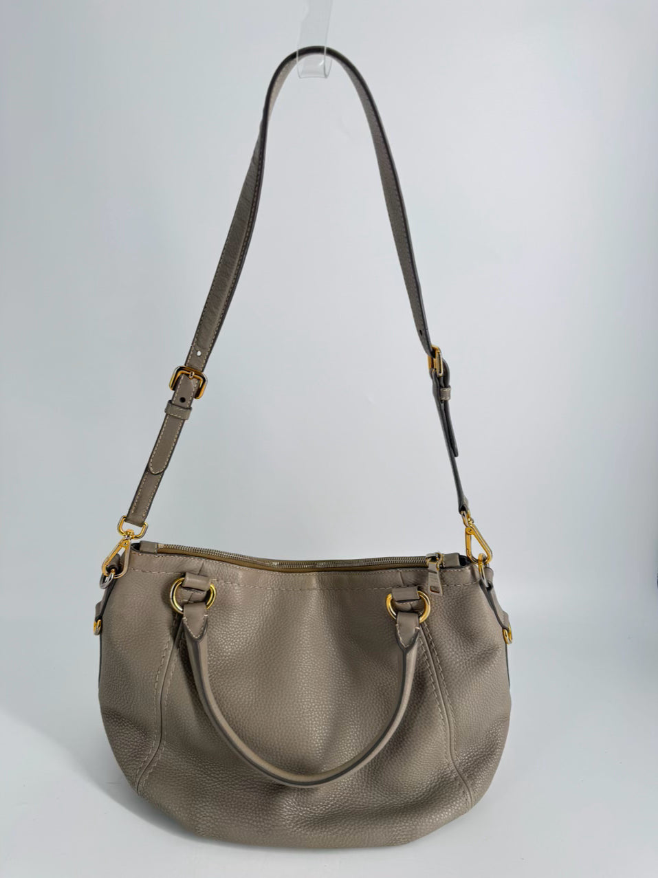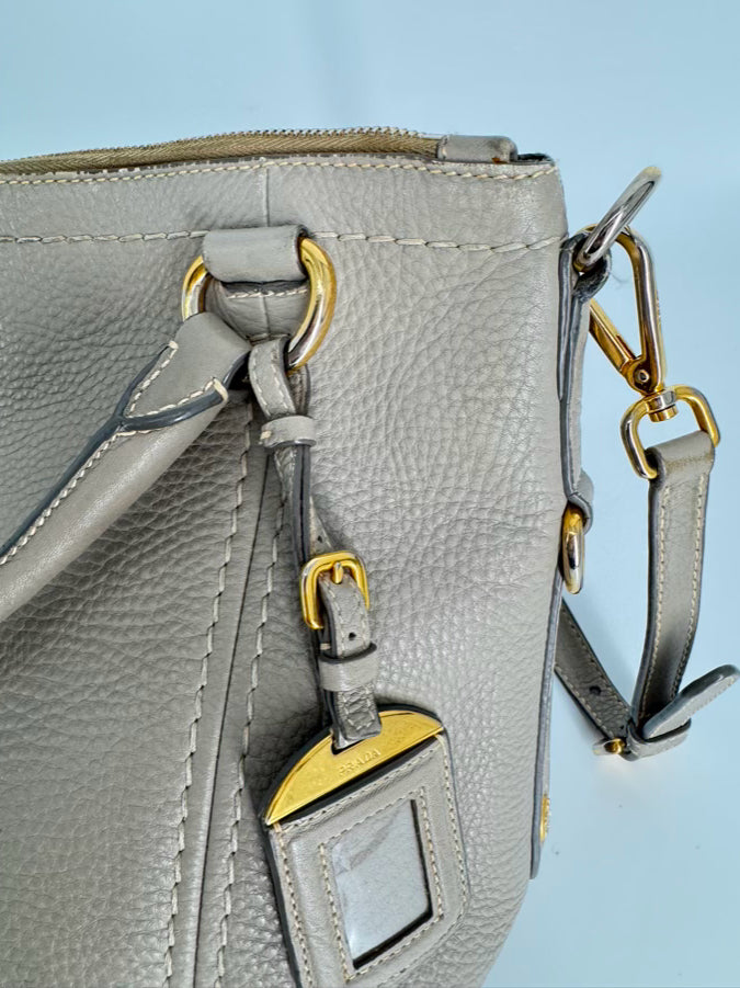 PRADA Gray Pebbled Leather Purse