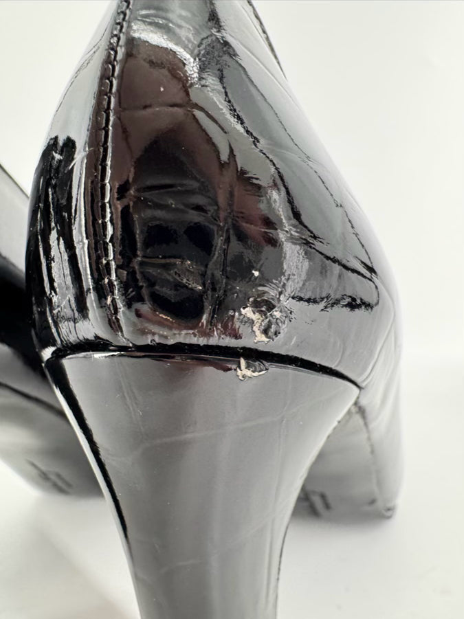 SALVATORE FERRAGAMO Size 7 Black Embossed Leather Heels
