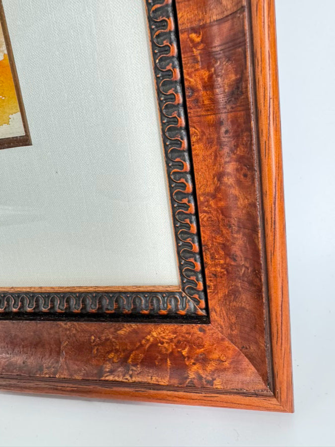 SIGNED Barn w/ Mountain View Watercolor in Burlwood Frame