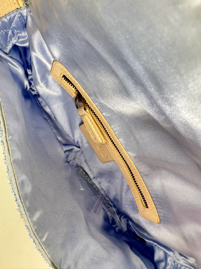 STAUD Blue & White Beaded Animal Print Tommy Purse