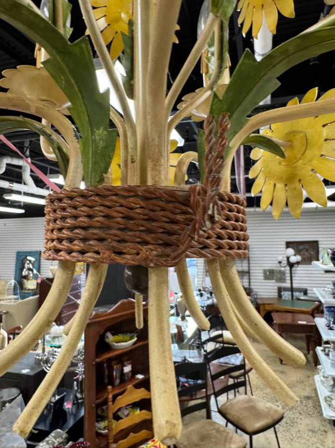 Yellow & Green Tole Sunflower 5-Arm Chandelier