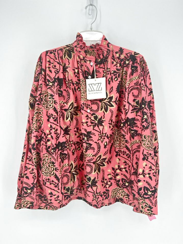 SZ BLOCKPRINTS Size M Berry Print Floral Blouse NWT