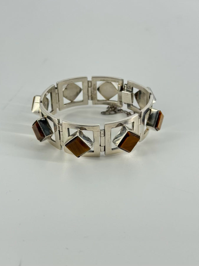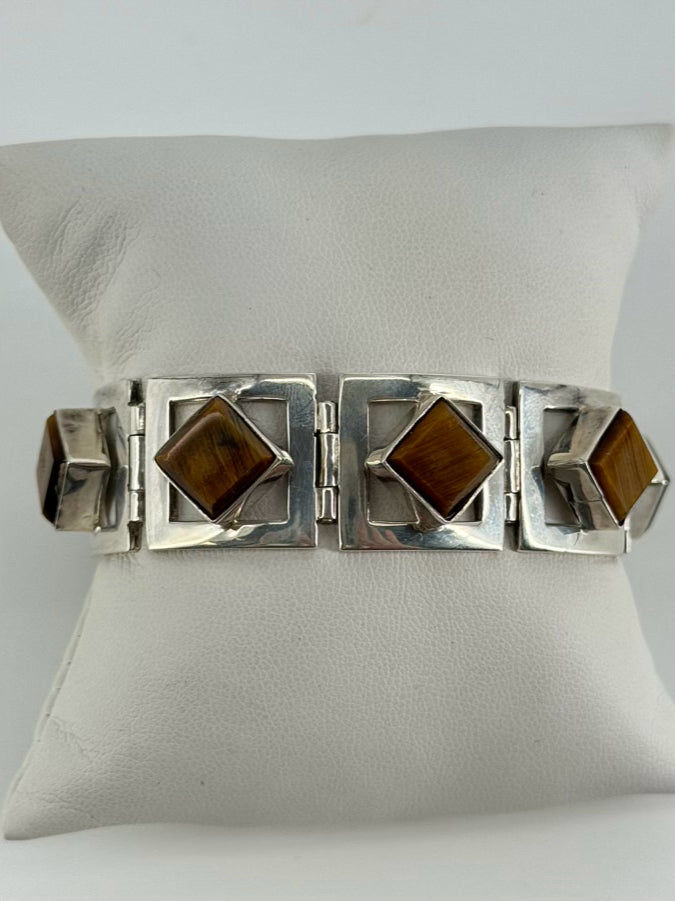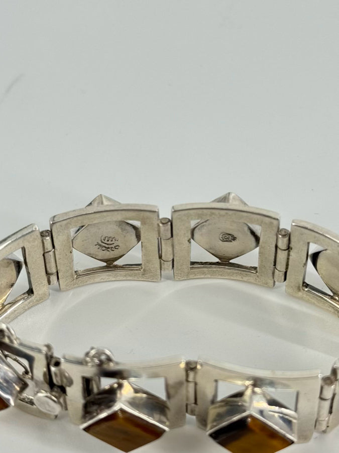 TAXCO MEXICAN STERLING SILVER Tigers Eye Mid-Century Bracelet