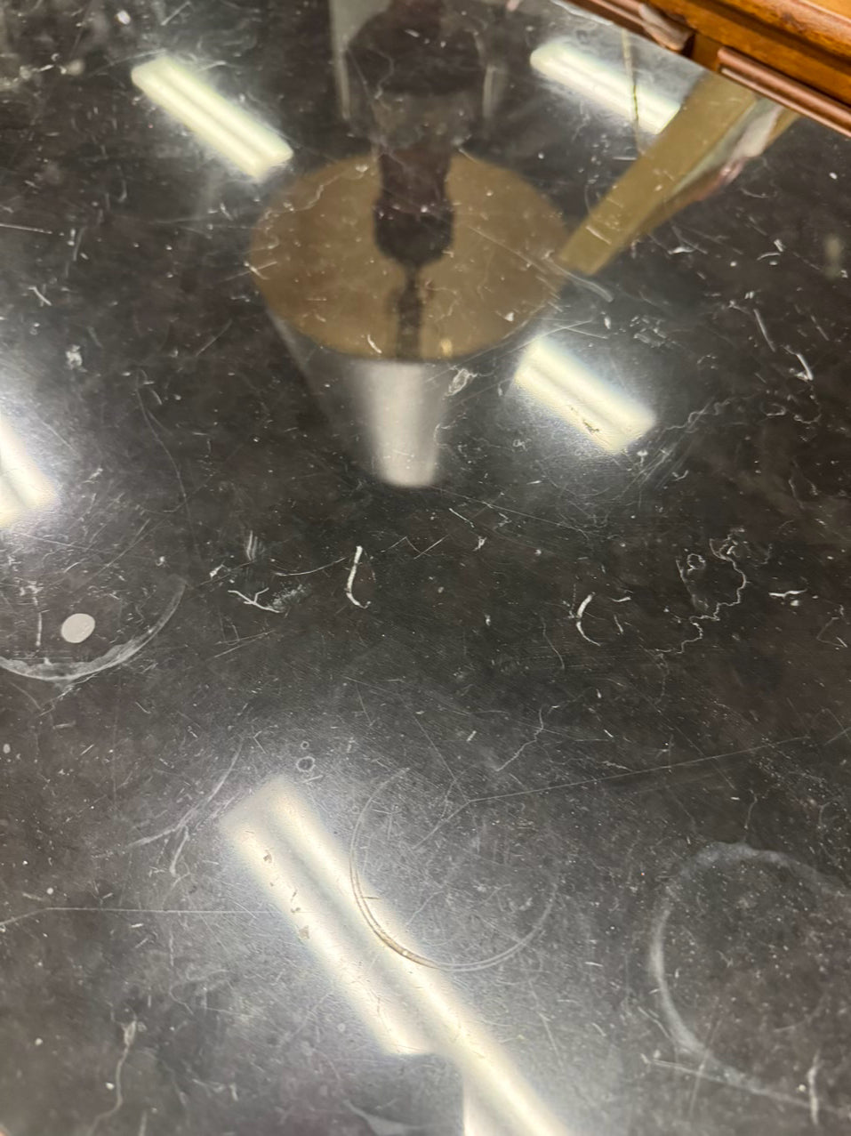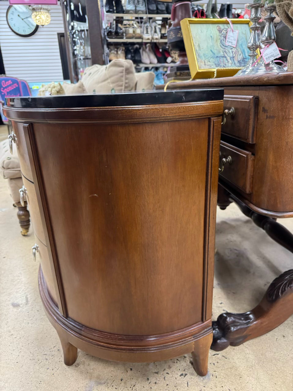 THOMASVILLE Wood Bow Front Credenza w/ Black Stone Top