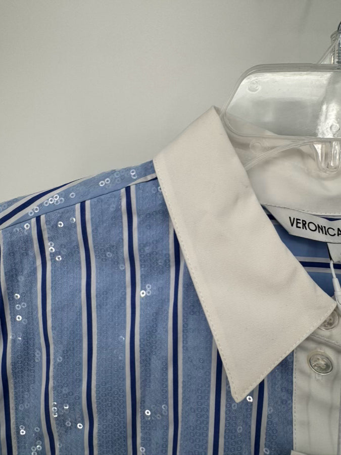 VERONICA BEARD Size 4 Blue & White Sequin Maia Top NWT