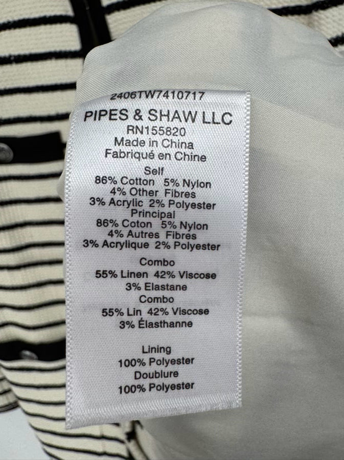 VERONICA BEARD Size 8 Cream & Black Stripe Blazer